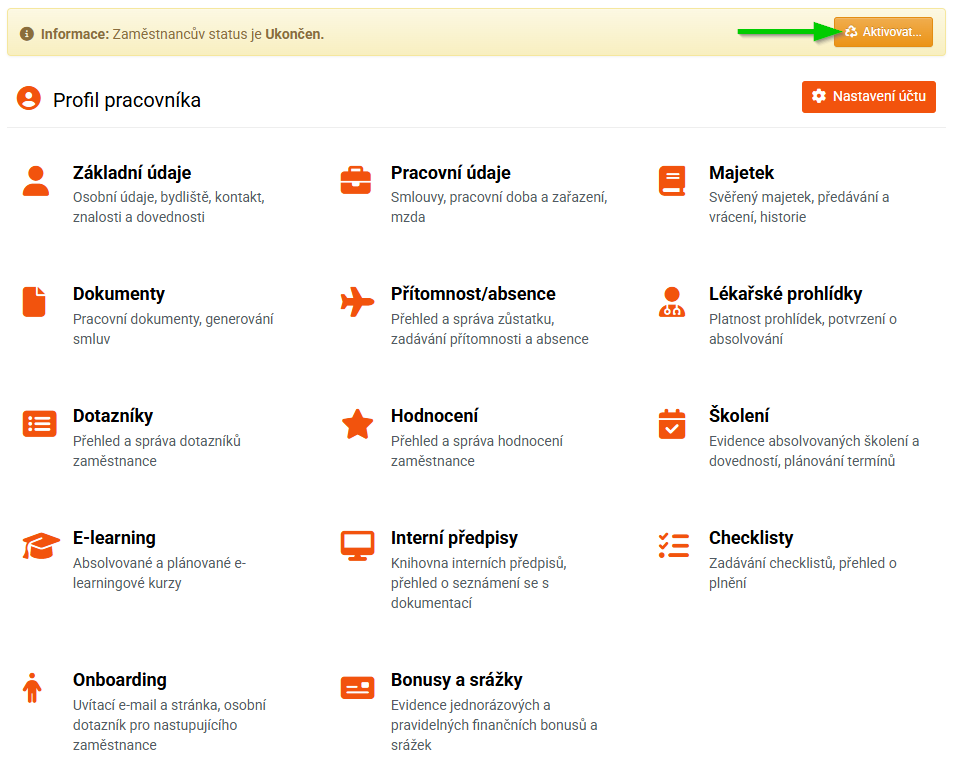 Po potvrzení dojde k opětovné aktivaci zaměstnance a jeho profil bude znovu veden jako aktivní.
