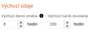 Zde nastavte výchozí počet hodin pro denní směnu a pro nárok na dovolenou.