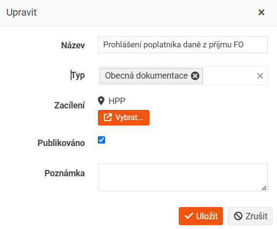Po jejím vybrání se otevře okno, kde můžete upravit následující položky: