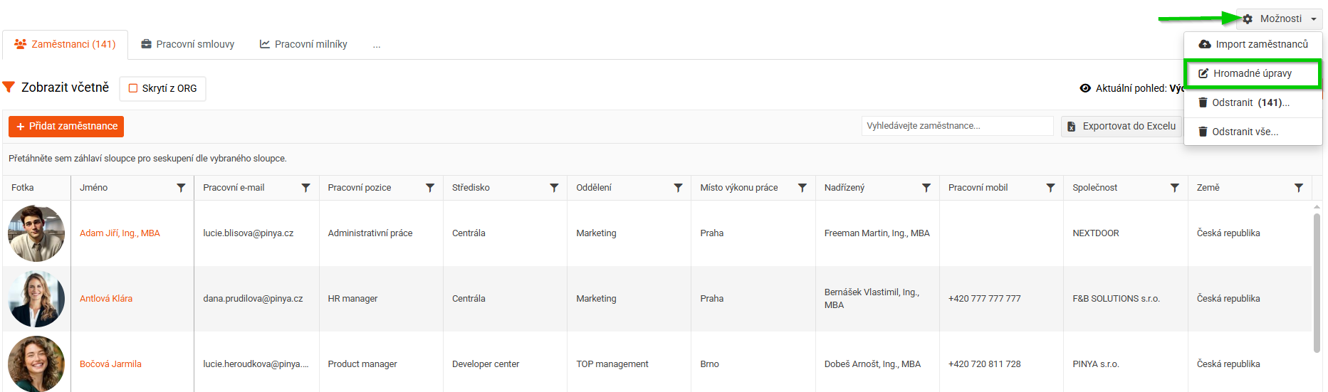 Umožňuje efektivně upravovat větší množství záznamů bez nutnosti individuální editace každého zaměstnance.