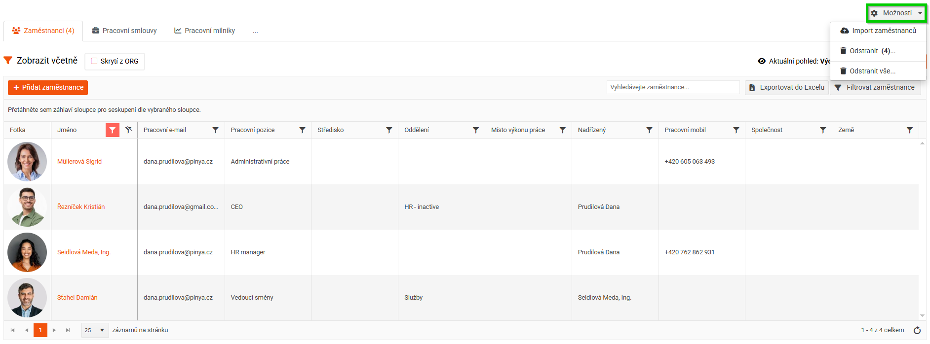 Pro zobrazení seznamu zaměstnanců přejděte v navigačním menu na Zaměstnanci > Seznam zaměstnanců.