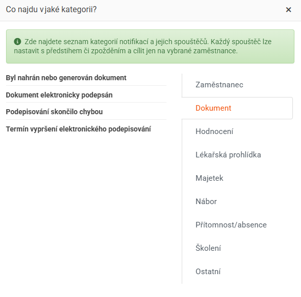 který vám poradí, jakou notifikaci si můžete v rámci vybrané kategorie vytvořit.