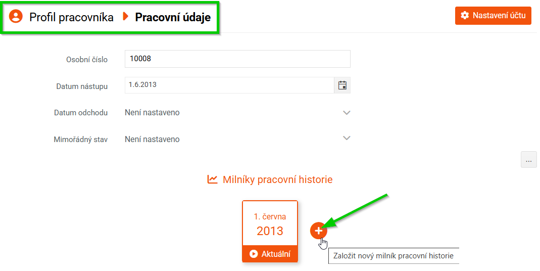 přejděte na Profil pracovníka > Pracovní údaje a založte nový milník.