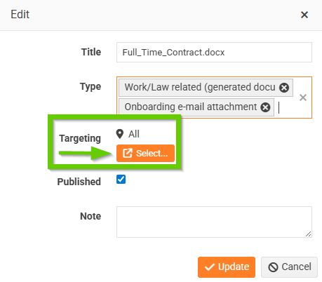 You can then target the uploaded document to selected employees. You can make edits by clicking the pencil icon .