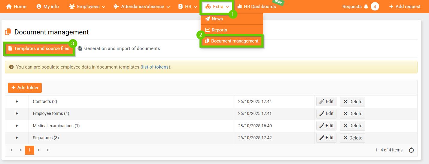 To ensure automatic documentation generation, the uploaded document templates need to contain the appropriate tokens. Instructions for inserting tokens into documentation are available here .