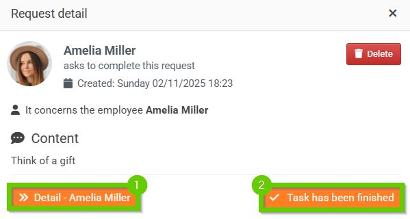 If something changes and the task is no longer valid, or another colleague has completed it, if you are a person with authorization, you can mark the task as completed yourself or delete it directly using the button with the cross icon.
