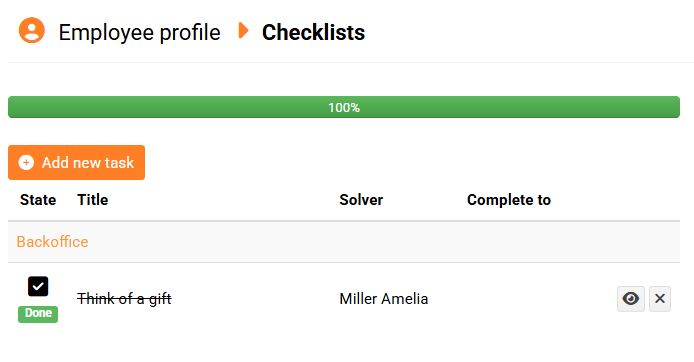 If you have permission to view other colleagues' profiles, you can check off a completed task directly in the task list.
