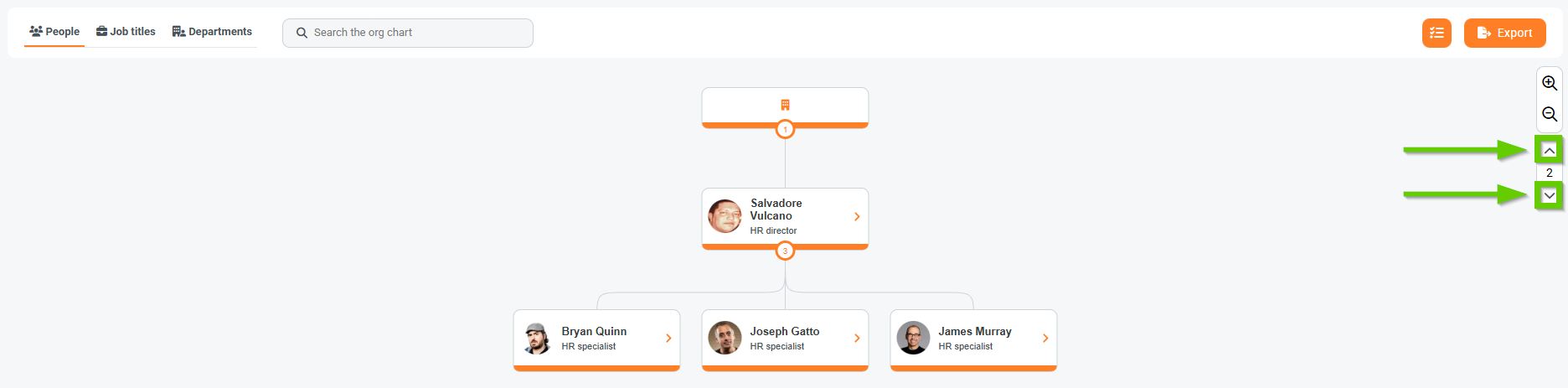 You can zoom in or out on the organizational structure using the magnifying glass or mouse wheel.
