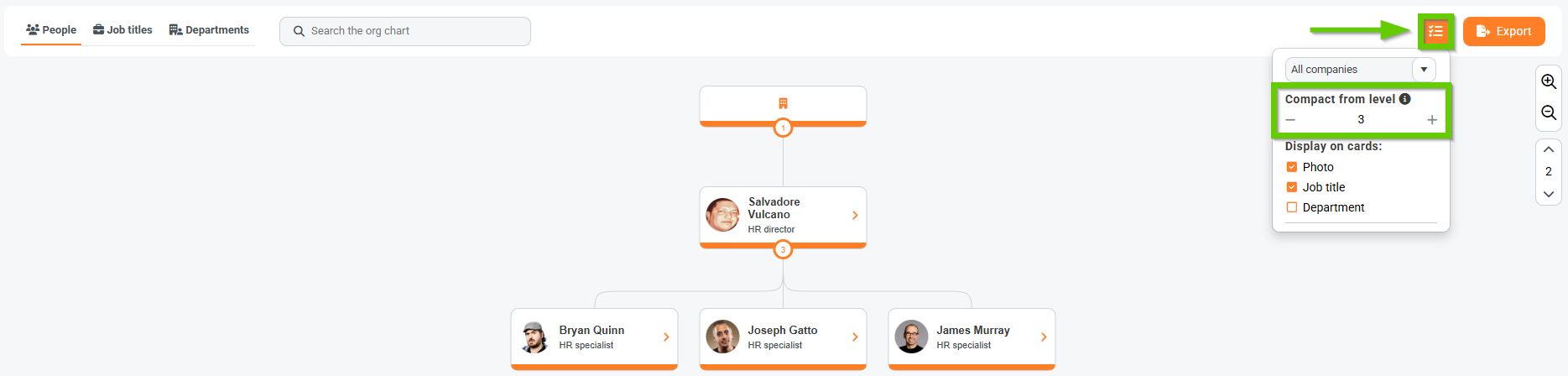 Compact display from a certain level onward allows you to reduce the size of individual blocks and organize them more efficiently, which is especially practical for large structures with many subordinates.