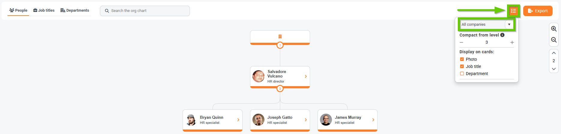 On all tabs, you can also specify whether you want to display the organizational structure for all companies or select just one specific one.