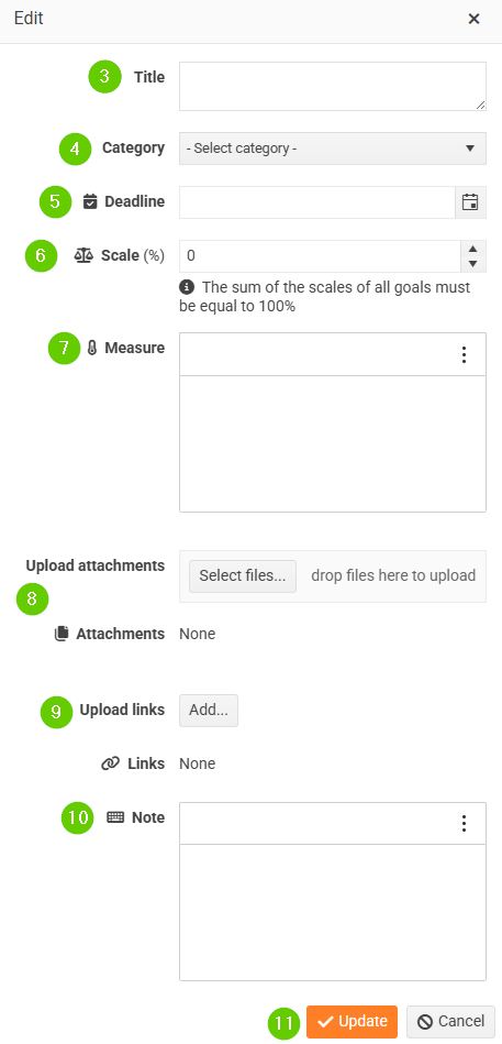 - Click the Add goal button to open the attribute entry form.