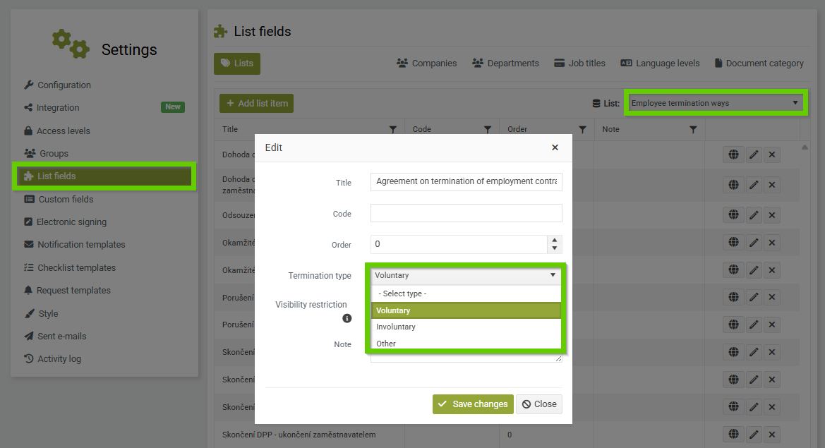 - Method of leaving (HOW he left) – e.g. Termination by the employee, Agreement on termination of employment contract, Cancellation during the probationary period…