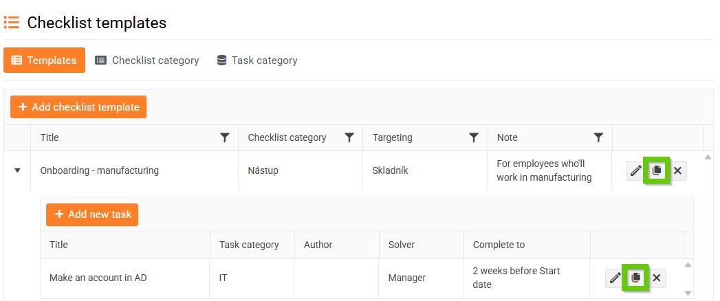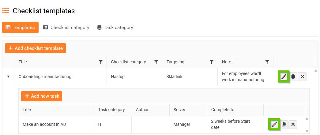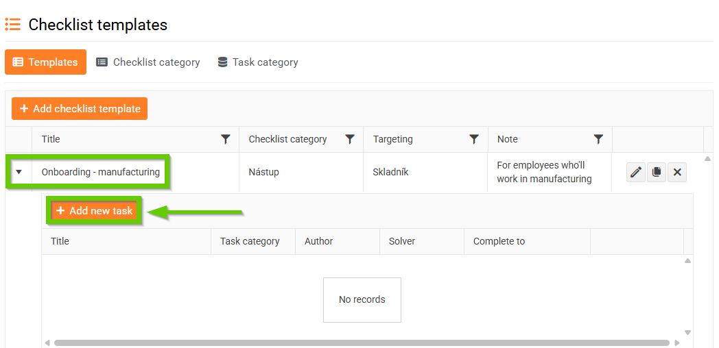 Before you start creating a new checklist template, check if you have the necessary checklist categories and task categories created. If not, start by creating them first.