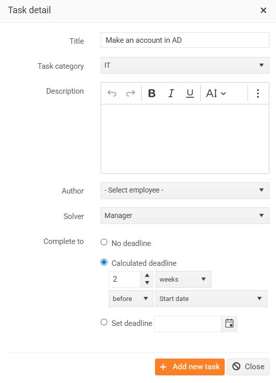 - Leave the author field blank. Later, this field will be automatically pre-filled by the task submitter.