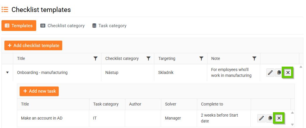 - Select the checklist/task you want to delete and click the cross icon next to it.