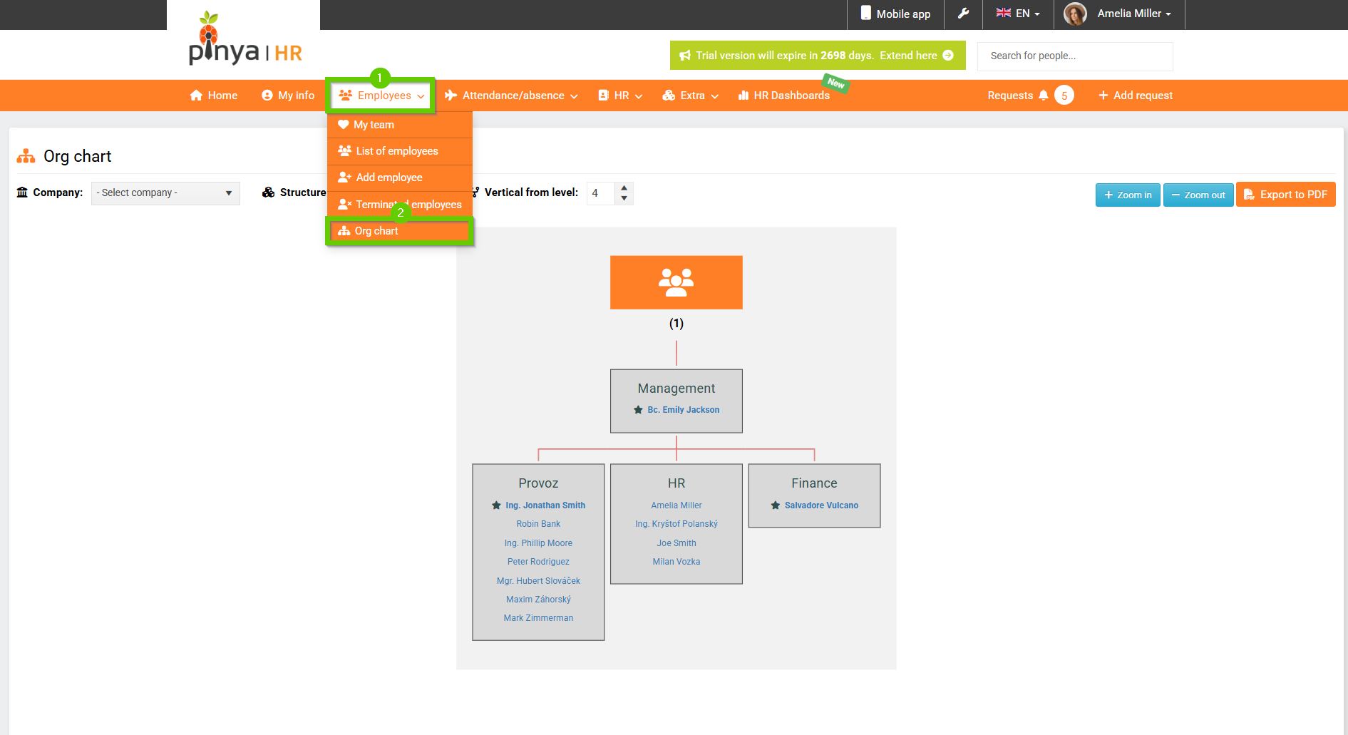 The organizational structure is a clear representation of you and your colleagues according to the hierarchy in the company.