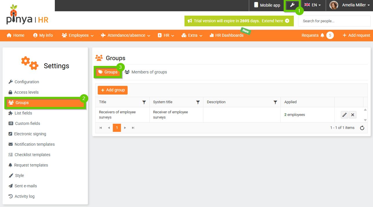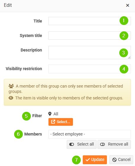 An employee group can be used for easier targeting - for example, manuals, training, etc.
