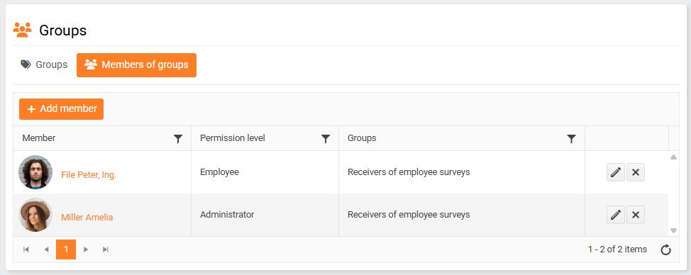 On the Groups tab, you will find a list of all existing groups, where you can create new ones, edit existing ones, and monitor the number of their members.