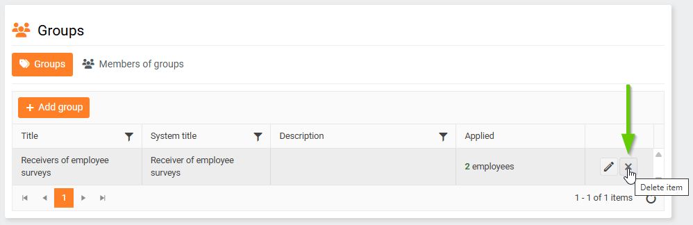 A group cannot be deleted if it is used in targeting or permissions . In such cases, the delete option is not offered (the cross icon for deletion will not appear).