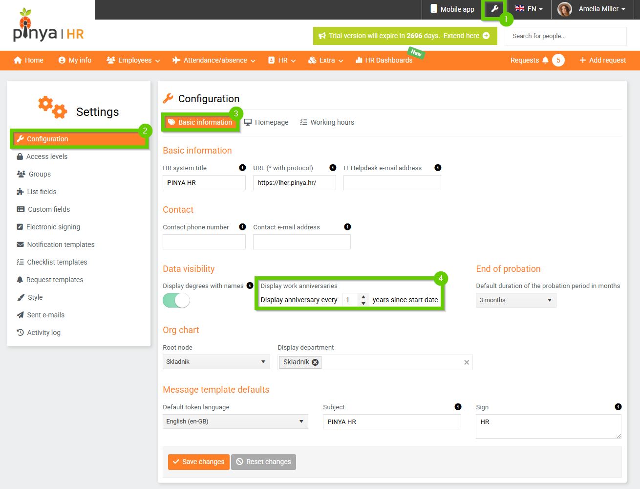 This setting affects the display of work anniversaries in several parts of the system, namely: