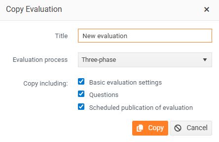 - Fill in the Copy name , select Evaluation process and check which tabs you want to copy. Save with the Copy button.