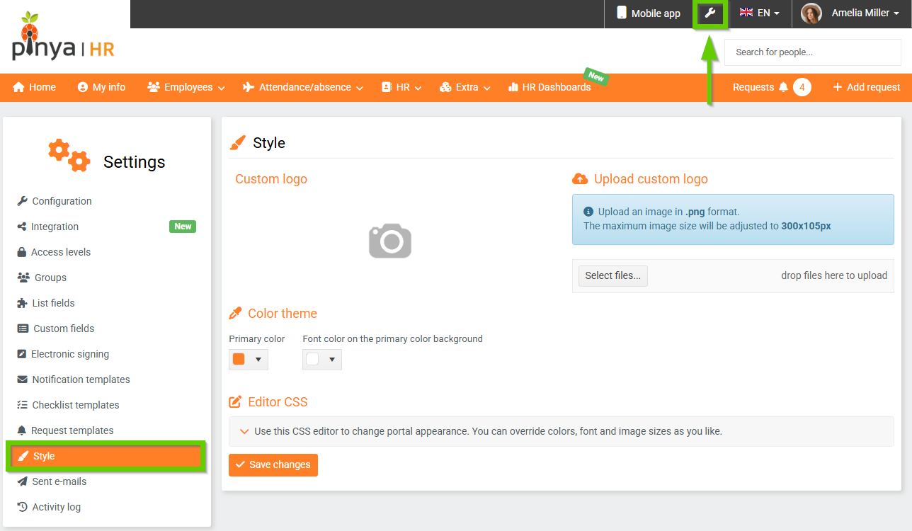You can partially customize the style of your PINYA HR in the main system settings under the Style tab.