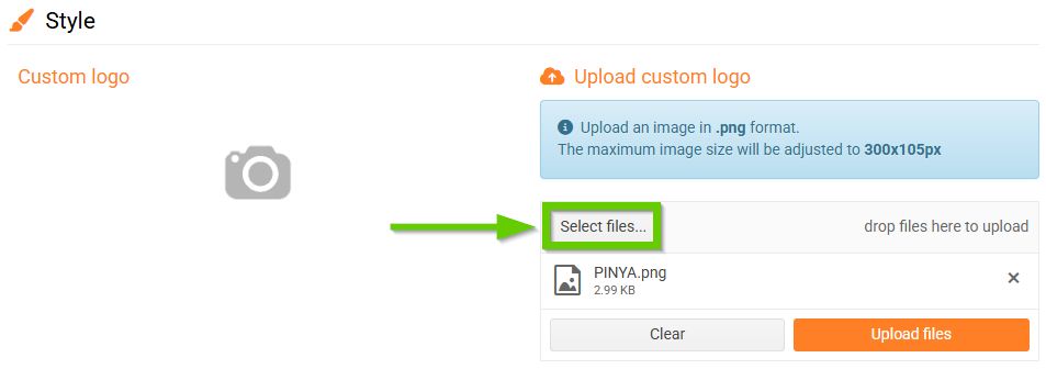 Uploading your own logo is the easiest way to customize the system. Select a PNG file and upload it. Your logo will continue to appear in the top left of the app instead of the Pinya HR logo.