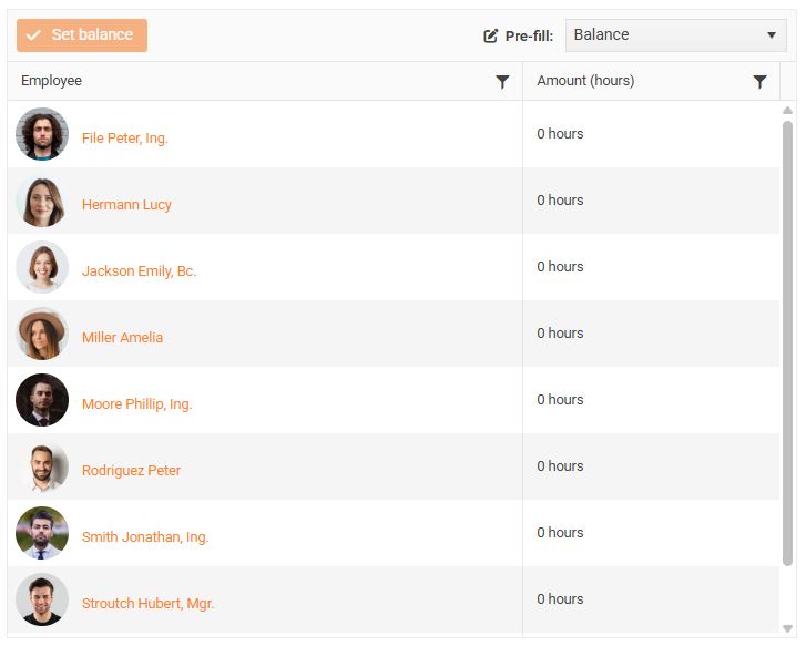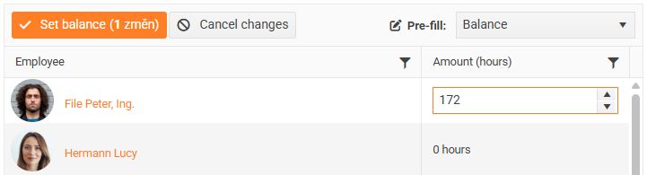 - Balance – you set the balance for each employee manually by clicking the Quantity field and entering the number of hours.