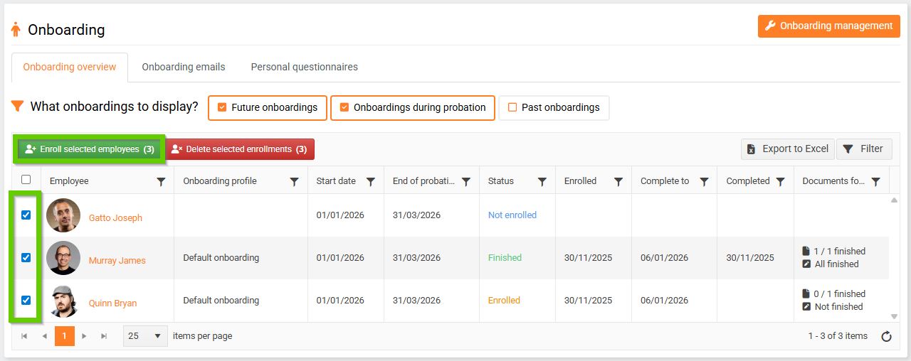Here, select the employees you want to enroll and click the Enroll selected employees button.