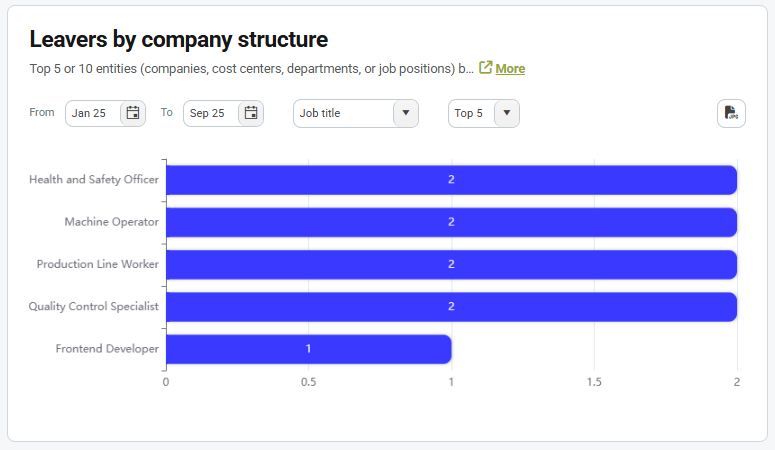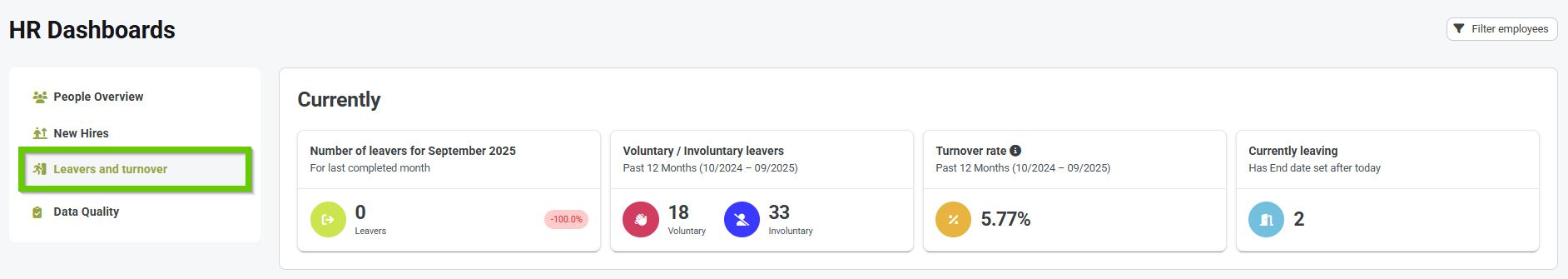 This dashboard provides a detailed overview of the number of departures and the turnover rate.