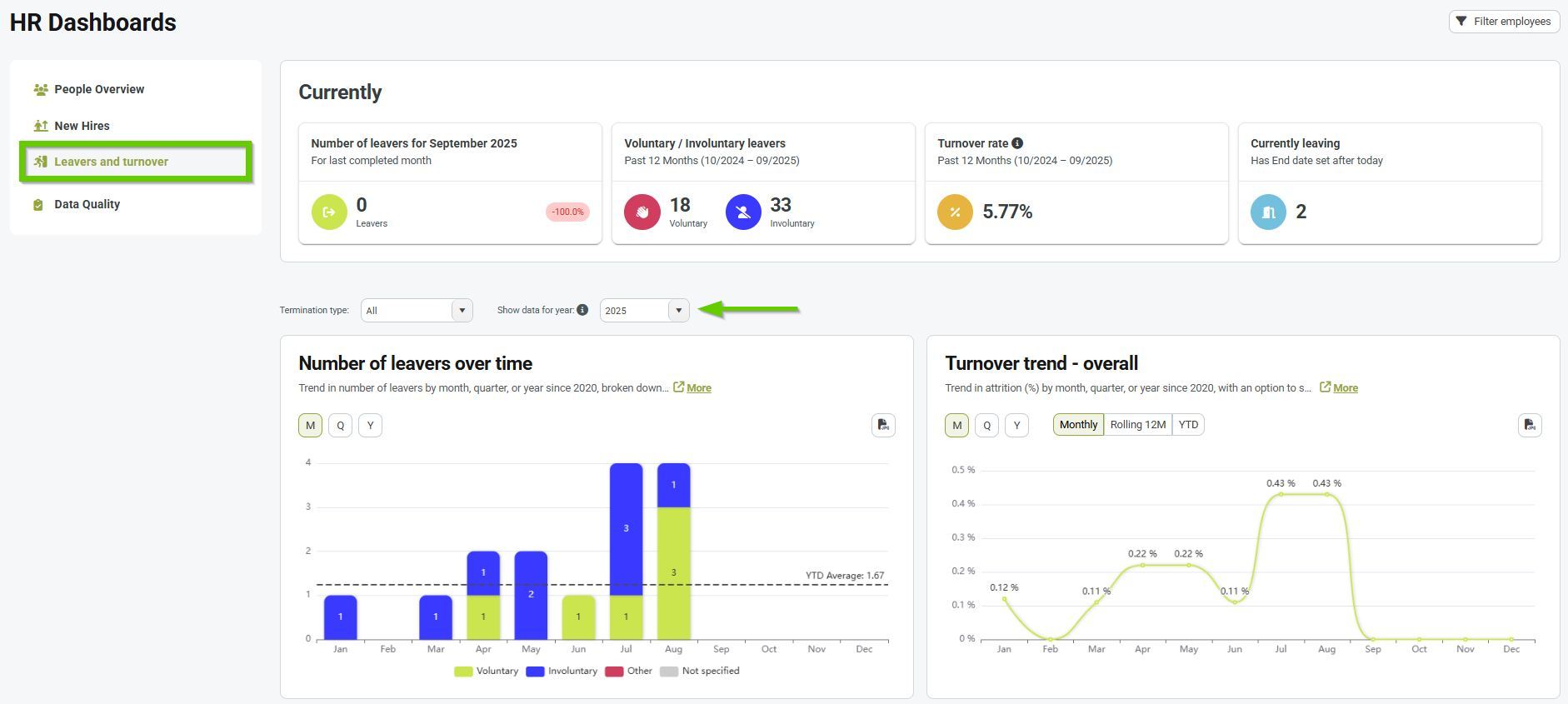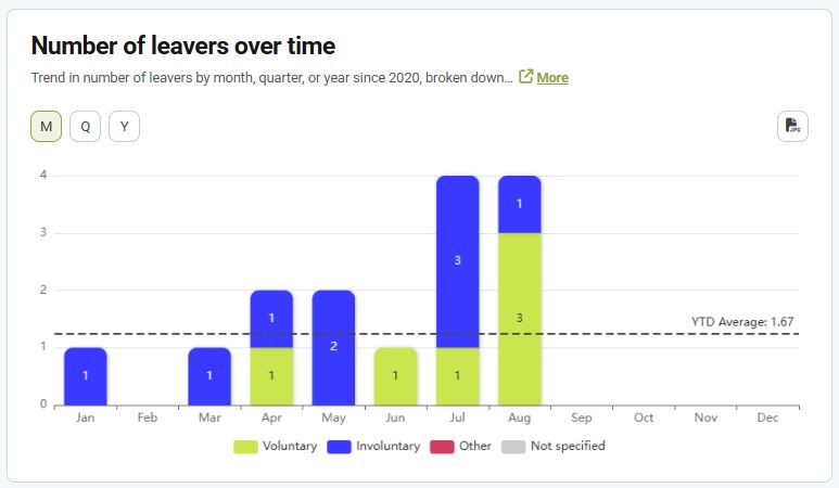 - Voluntary / Involuntary Departures - shows the number of employees who left voluntarily or involuntarily in the last year