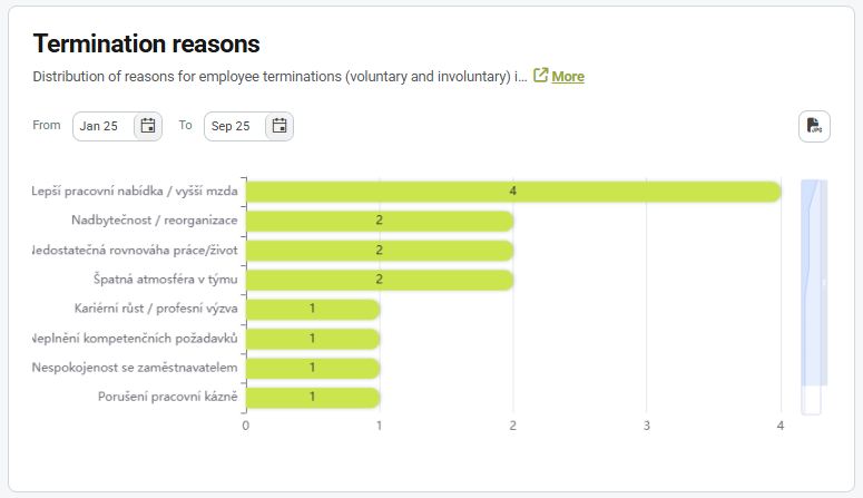 The graph shows the reasons why employees terminated their employment in the selected period.
