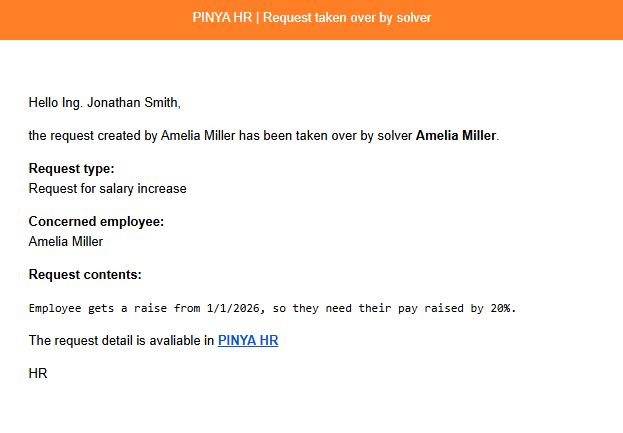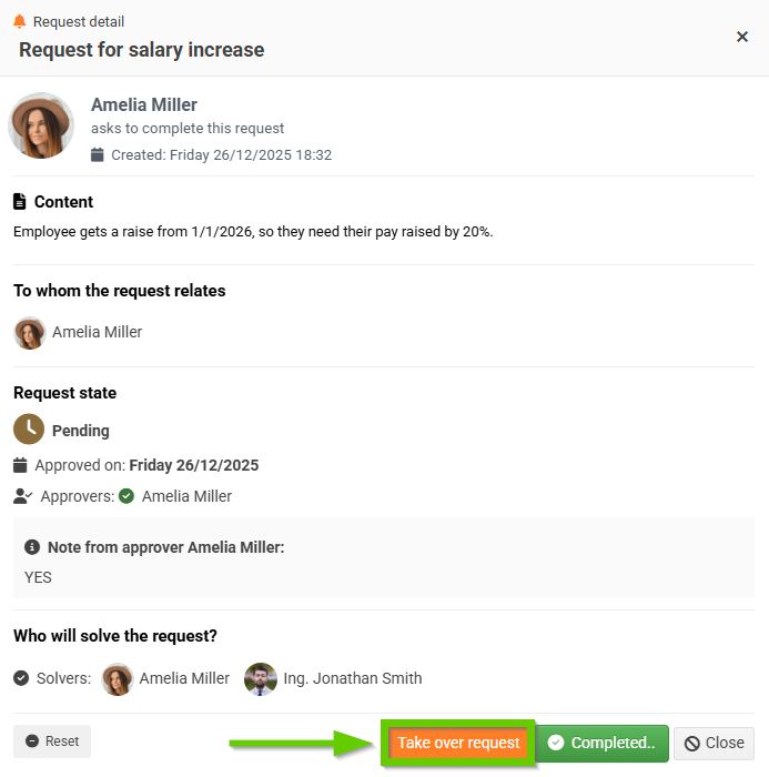 Using the link provided in this notification, each of the solvers can go to the request details. The solver who first takes over the request marks it using the Take over request button.