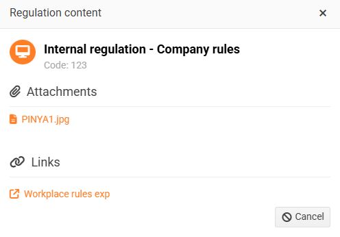 Here you will find all attachments and links related to the selected internal regulation. You can view the attached documents and links directly.
