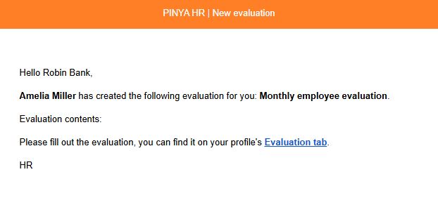 - The employee to whom the evaluation has been added will receive a notification at their email address containing a link that will redirect them to the evaluations page.