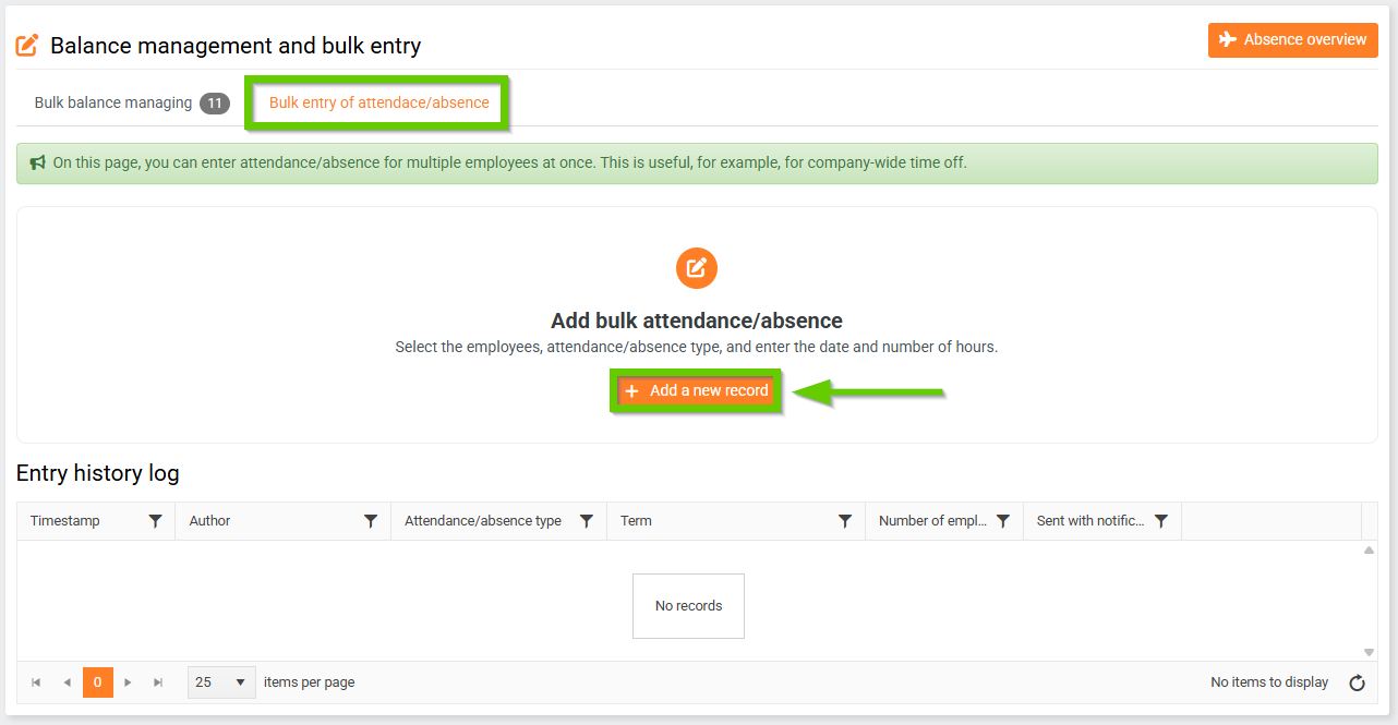 To add a mass absence, click the Add new record button.
