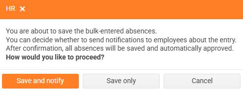 A notification will appear - choose whether you want to send notifications to employees about entering absences or whether you want to just save the records.
