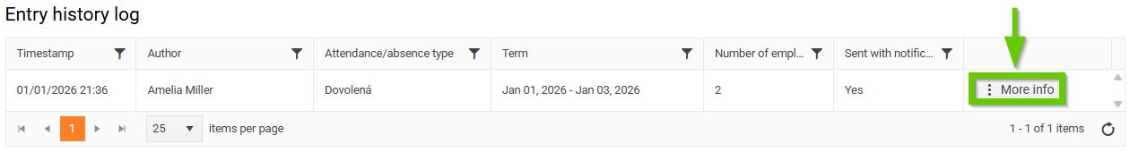 Click the More info button to view a list of employees included in the record.