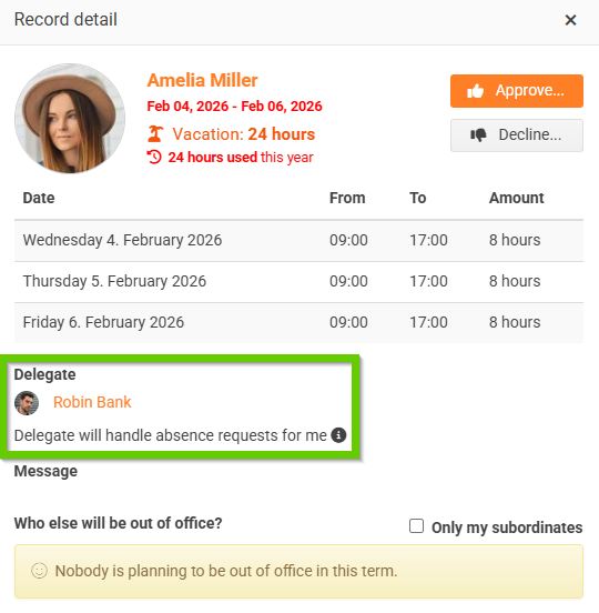 In case of absence, you can designate a delegate to handle the requests on your behalf.
