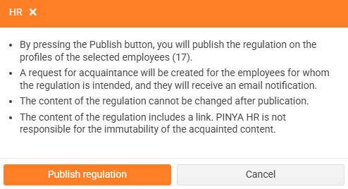 - A warning will appear. If you really want to publish the regulation, confirm the warning.