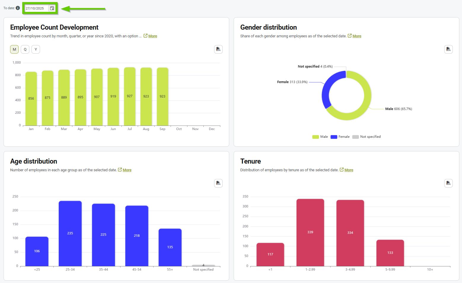 - Total number of employees - shows the number to date
