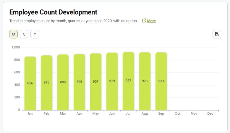 The graph shows the development of the total number of employees over a certain period.