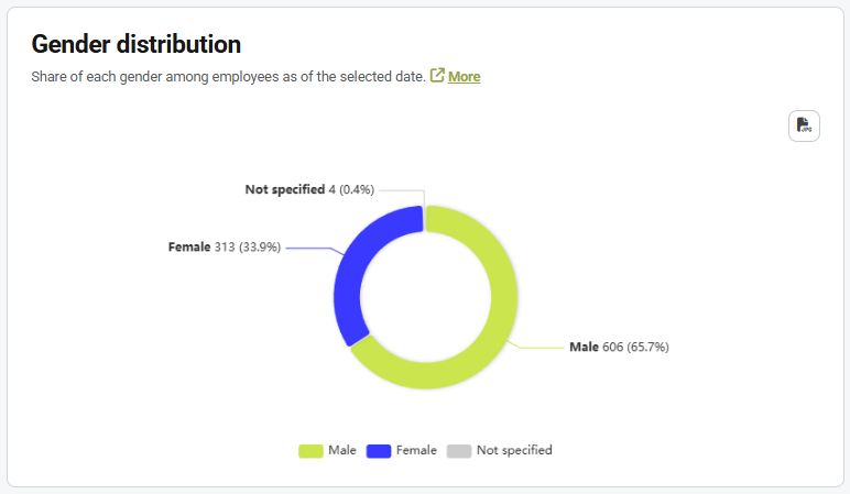 The graph shows the proportion of each gender among employees on the selected date.