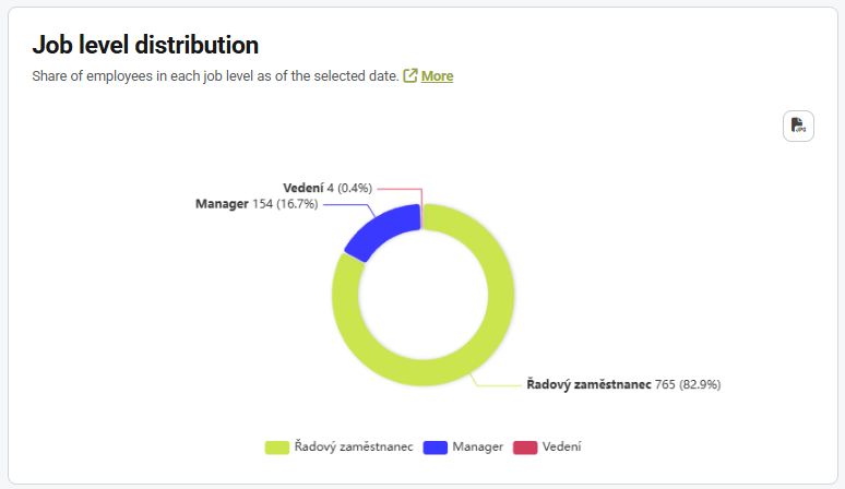 The graph shows the proportion of employees in individual job levels on the selected date.