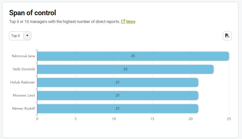 The chart allows you to view the Top 5 or Top 10 managers with the highest number of direct reports.