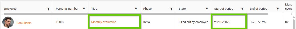 - In column C, fill in the start date of the evaluation period; you can also find it in the evaluation overview.