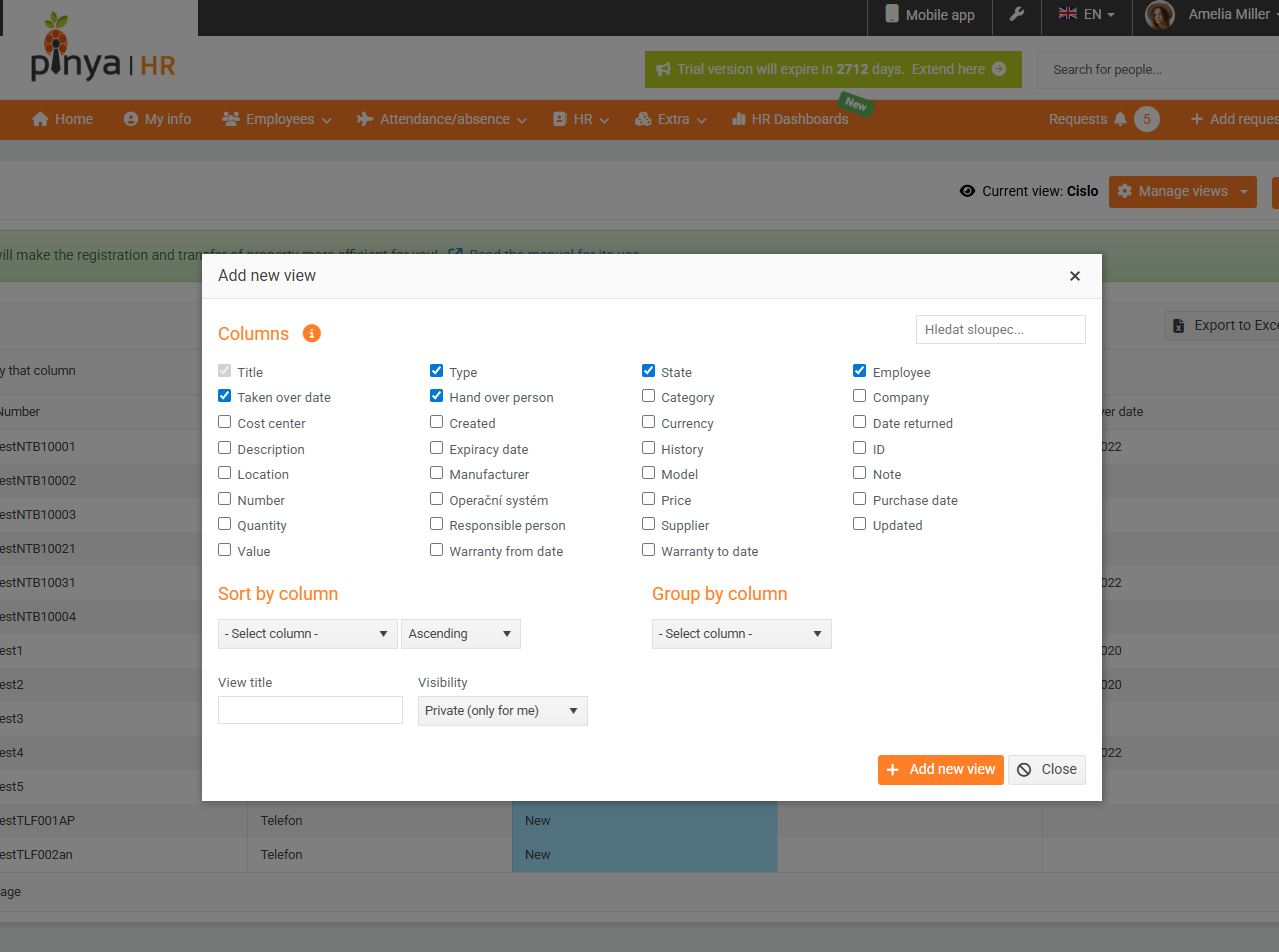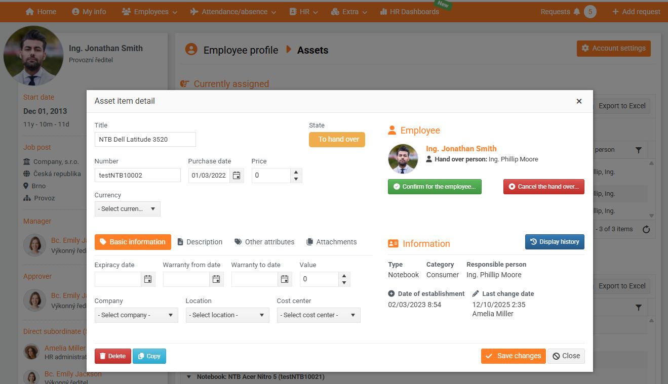 - If you do not check the box, the employee will be prompted to take over the property, the item will have the status To be handed over .