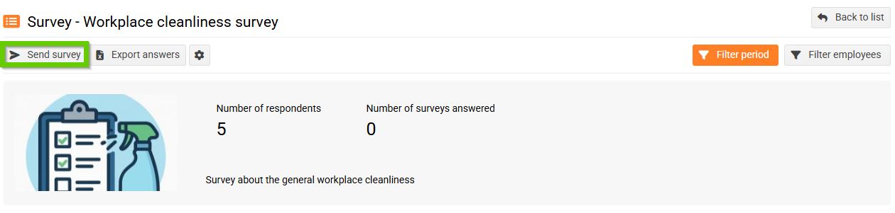 b) Under the Respondants tab, click Send survey to send the survey to the selected employees.