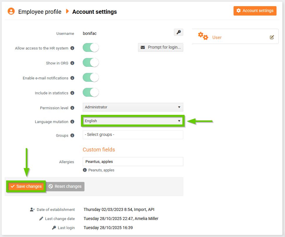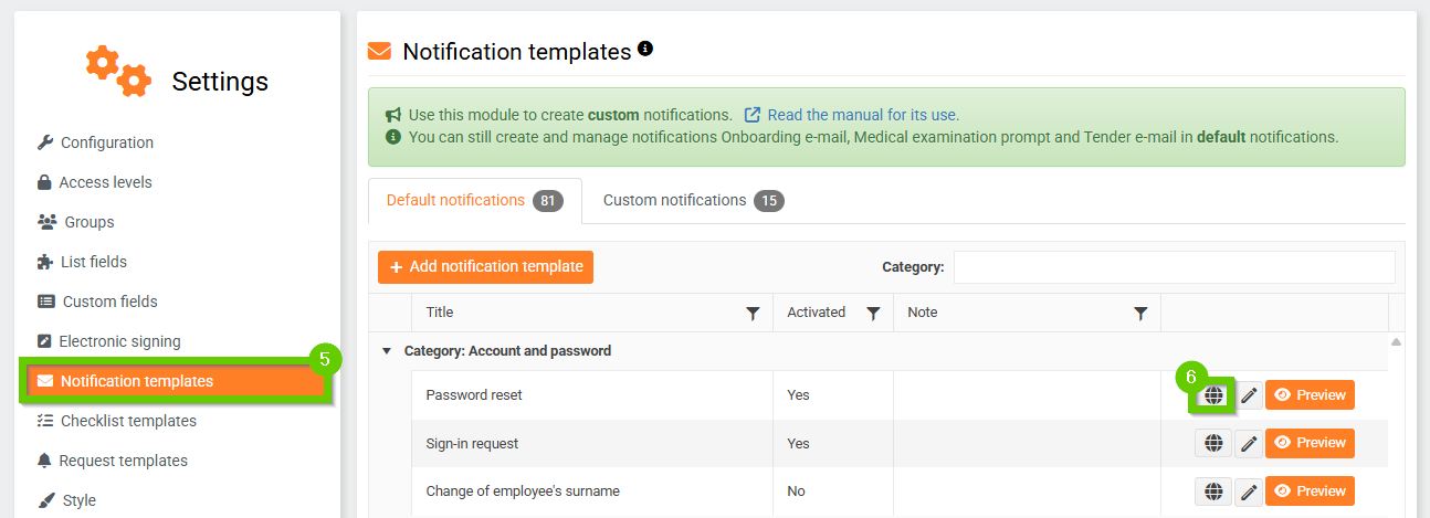 - The new language variant is registered. Now you need to set it up for individual employees and the desired message templates that you want to send in the respective language.