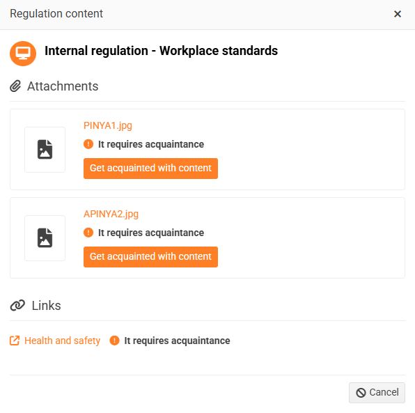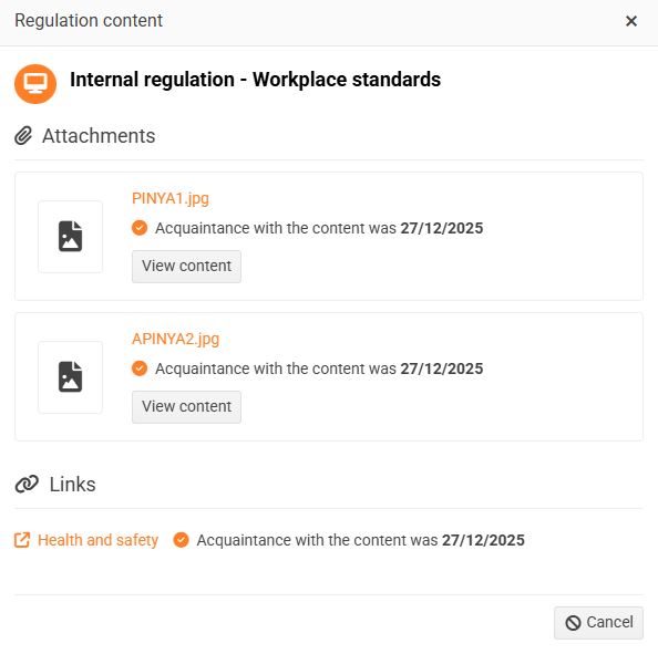 - In the Links section, click on the attached links. The link will automatically open in a new tab. After familiarization, I confirm acquaintance buttons will appear next to each link.